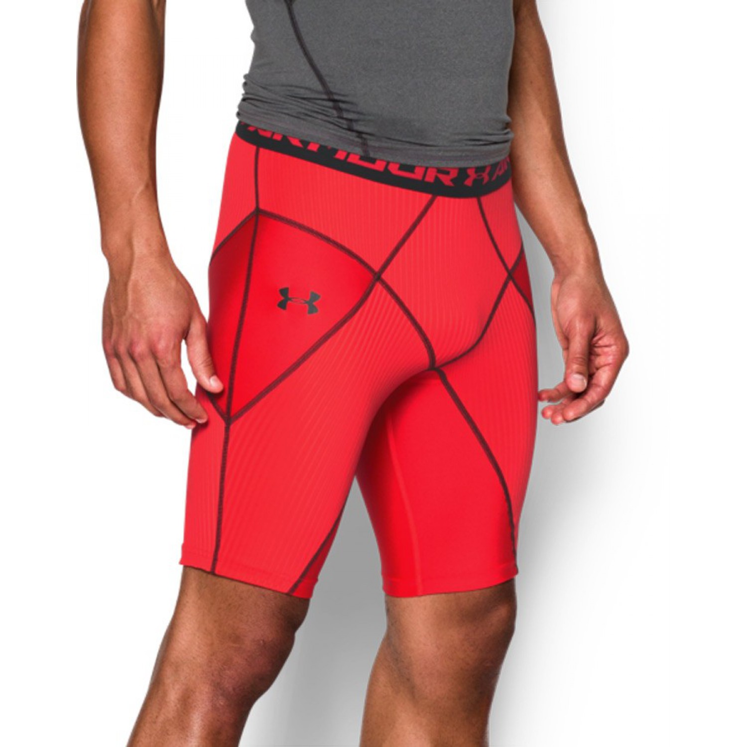 Mens UA Heat Gear Compress Coreshort Rocket RED